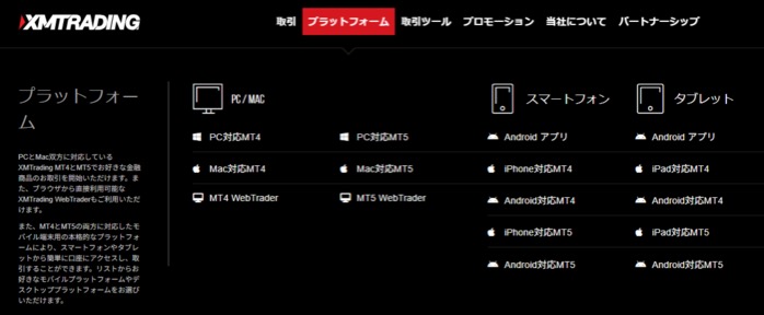 XMではMT4(MetaTrader 4)とMT5(MetaTrader 5)の2種類の取引プラットフォームが利用できます。