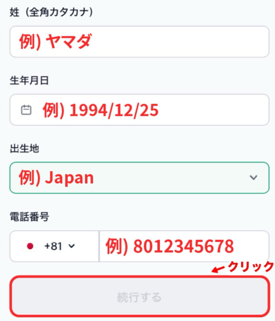 SMS認証や緊急時の連絡に使用します。携帯電話番号を推奨します。