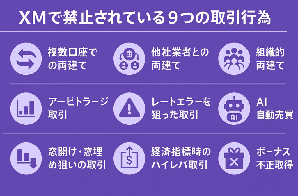 まずは、XMで明確に禁止されている取引行為を確認していきます。
