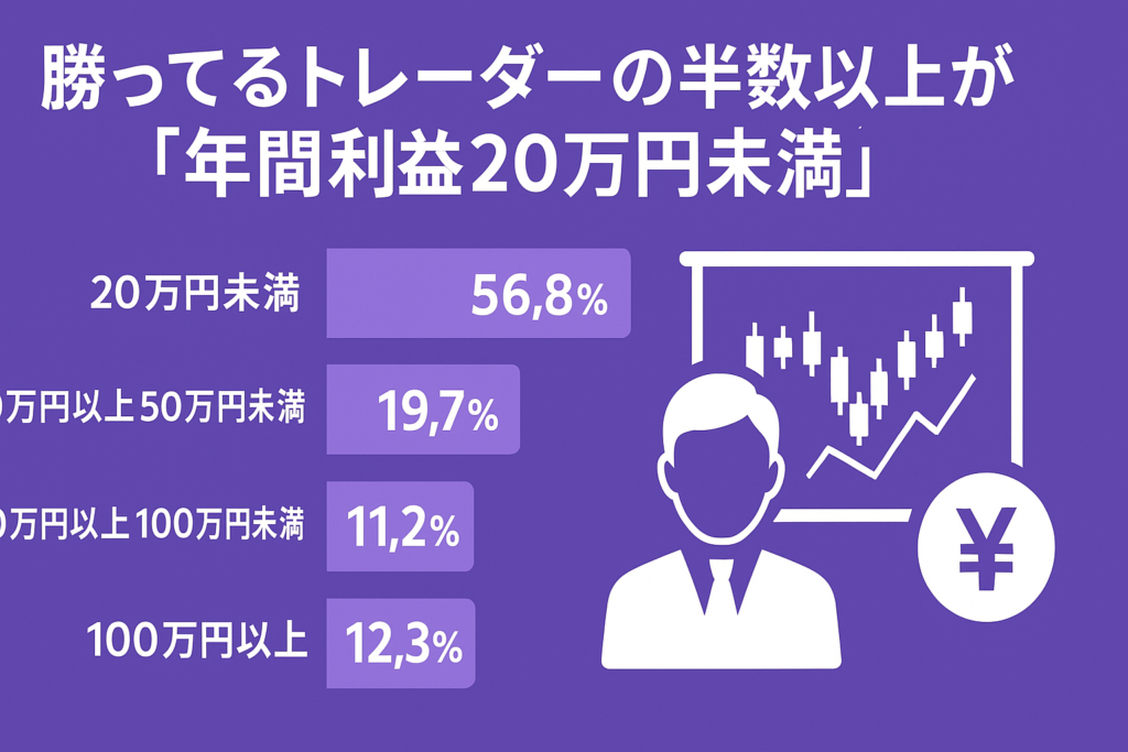 FXで稼げる人の割合は約60%。「9割が負ける」というのは誤解で、実際には年間ベースで半数以上の人が利益を出しています。ただし、その利益額の半数以上は年間20万円未満というのが現実です。