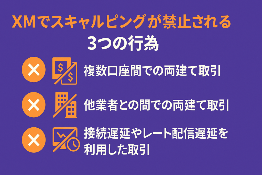 XMではスキャルピング自体は認められていますが、以下の3つの行為は明確に禁止されています。