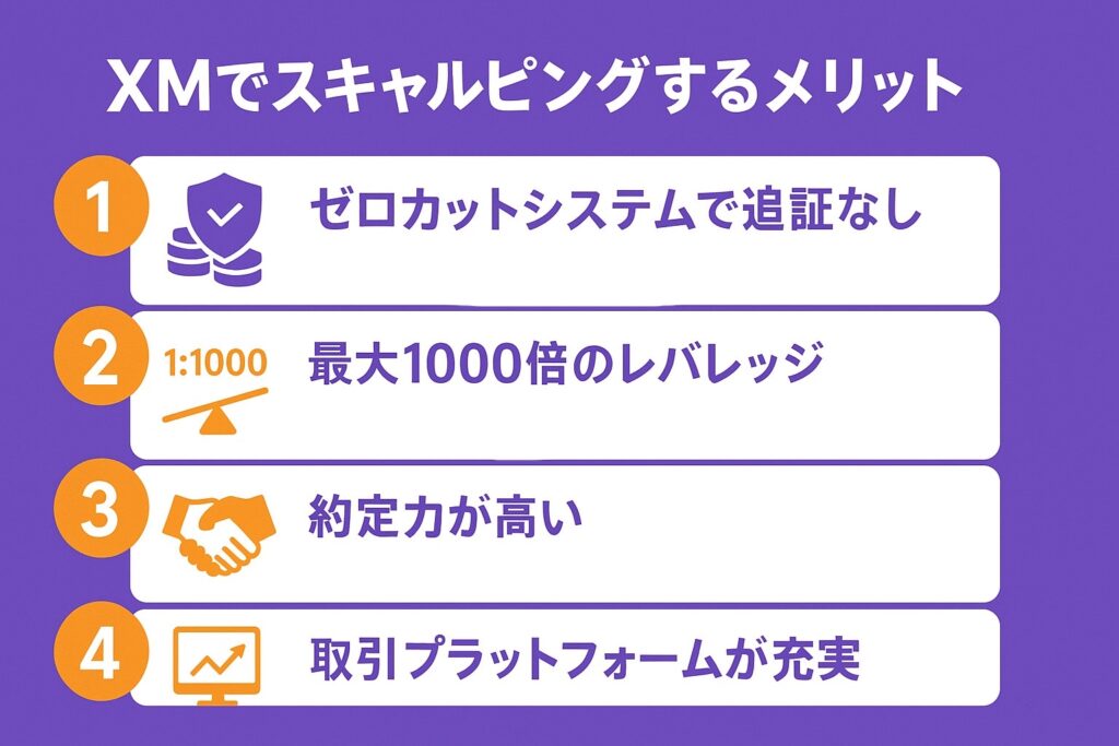 XMは「スキャルピング専門業者」というよりは「スキャルピングもできる総合力の高い業者」という位置づけです。