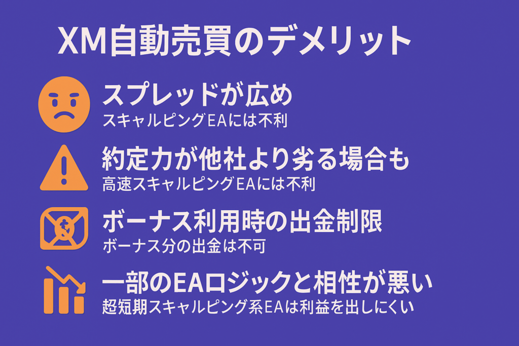 | 一部のEAロジックと相性が悪い | 超短期スキャルピング系EAは利益を出しにくい傾向 |