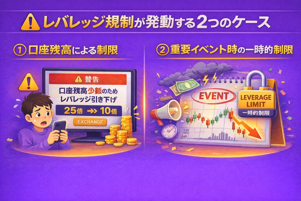 特に1000倍→500倍などの制限では必要証拠金が2倍になるため、維持率が半分に下がります。