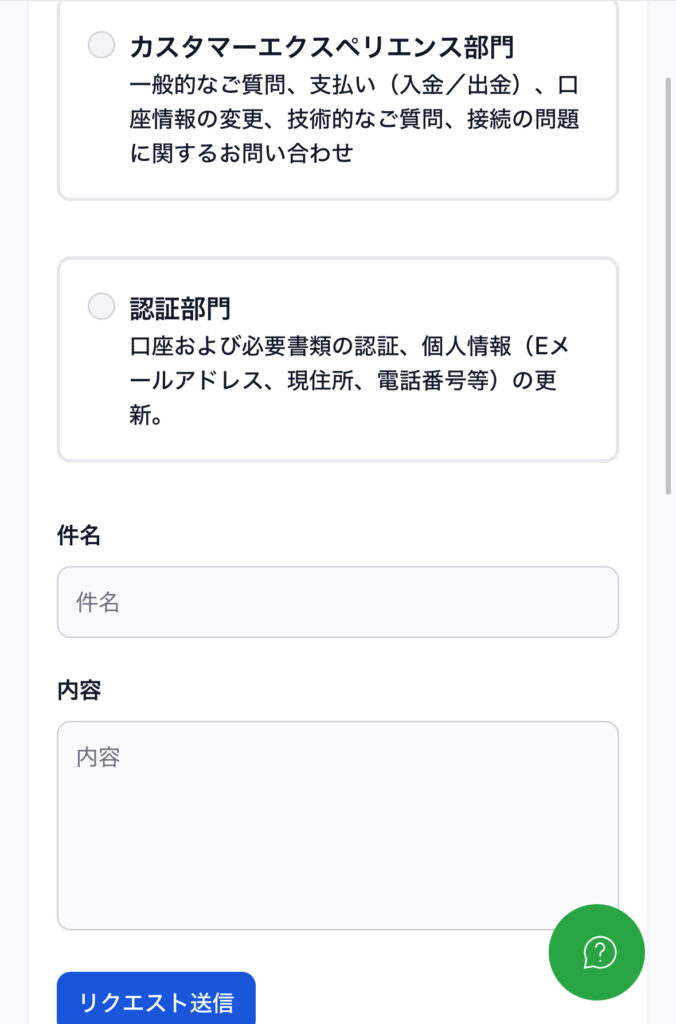 XMの会員ページにログイン後、専用の問い合わせフォームからもサポートへ連絡できます。この方法のメリットは、アカウント情報が自動で紐付けられるため、本人確認の手間が省けることです。