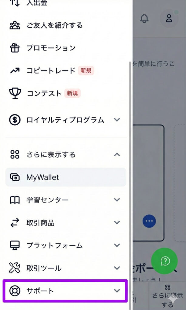 この方法は、アカウントに関連する問い合わせ(入出金履歴、ボーナス残高、レバレッジ変更など)で特に便利です。